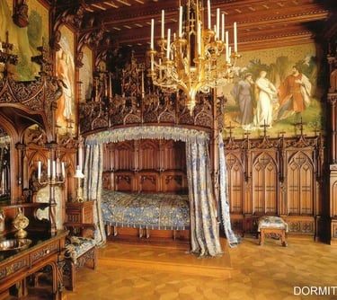 Di salah satu kamar tidurnya, bulan tampak bersinar dari langit berbintang buatan di atas tempat tidurnya. Atraksi lain tersembunyi di ruang makan Ludwig: „Tischlein-deck-dich", sebuah meja yang dapat diturunkan, di mana sang raja bisa makan tanpa diganggu pelayannya. Satu lantai lebih rendah terdapat dapur. Di sana meja disiapkan. Semacam lift membawanya langsung melalui lantai ke ruang makan. Biasanya menemani sang raja. Anggota masyarakat istana Prancis: panutannya Louis XIV dan lainnya. Tentu saja, tamu-tamu ini hanya ada dalam imajinasinya, tetapi ia menjalani percakapan yang hangat dengan mereka dan bersulang untuk mereka.